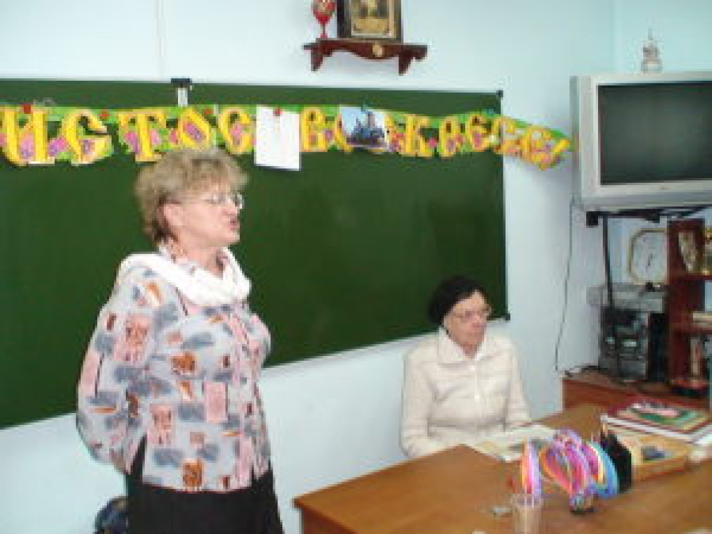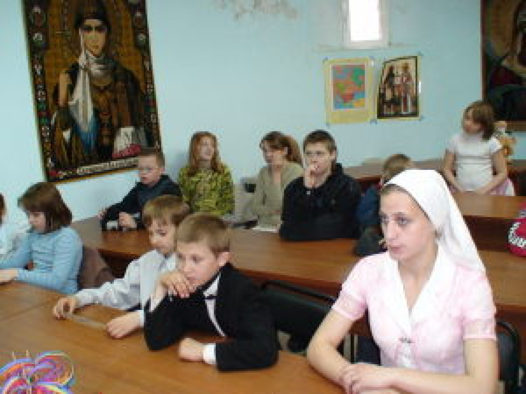 В рамках подготовки к Дню победы, а также с целью профориентации, учащиеся воскресной школы встретились с бывшей учительницей местной школы, молодость которой проходила в военные годы. Тузкова Тамара Ивановна известна большинству жителей поселка, особенно представителям старшего поколения. Многие годы она преподавала географию в местной школе. А поскольку, несколько учениц воскресной школы заявили о своем намерении в будущем стать учителями, эта встреча и имела место быть. Тамара Ивановна рассказала о трудностях и радостях своей профессии, ответила на все интересующие ребят вопросы. А поскольку встреча проходила 2 мая, в преддверии дня победы, не обошли стороной и тему войны. Тамара Ивановна застала войну совсем юной. Именно в период войны она пошла учиться в педагогическое училище. Тамара Ивановна рассказала о своих впечатлениях, связанных с войной, что тоже не оставило ребят равнодушными. А еще, ребята узнали, что среди учеников Тамары Ивановны была Екатерина Николаевна Кудря, директор воскресной школы.