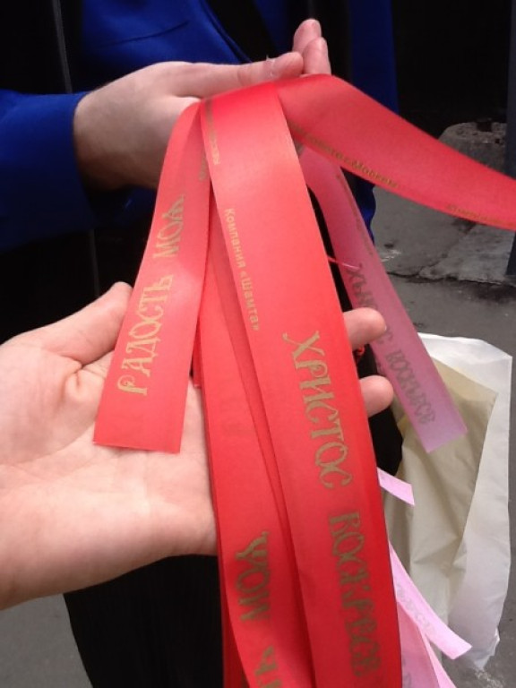 Три тысячи ленточек с надписью «Радость моя, Христос Воскресе!» было роздано на улицах города столичными миссионерами. Слушатели Епархиальных миссионерских курсов и студенты православного Свято-Тихоновского университета раздавали участникам торжеств и прохожим ленточки и поздравляли их с праздником.