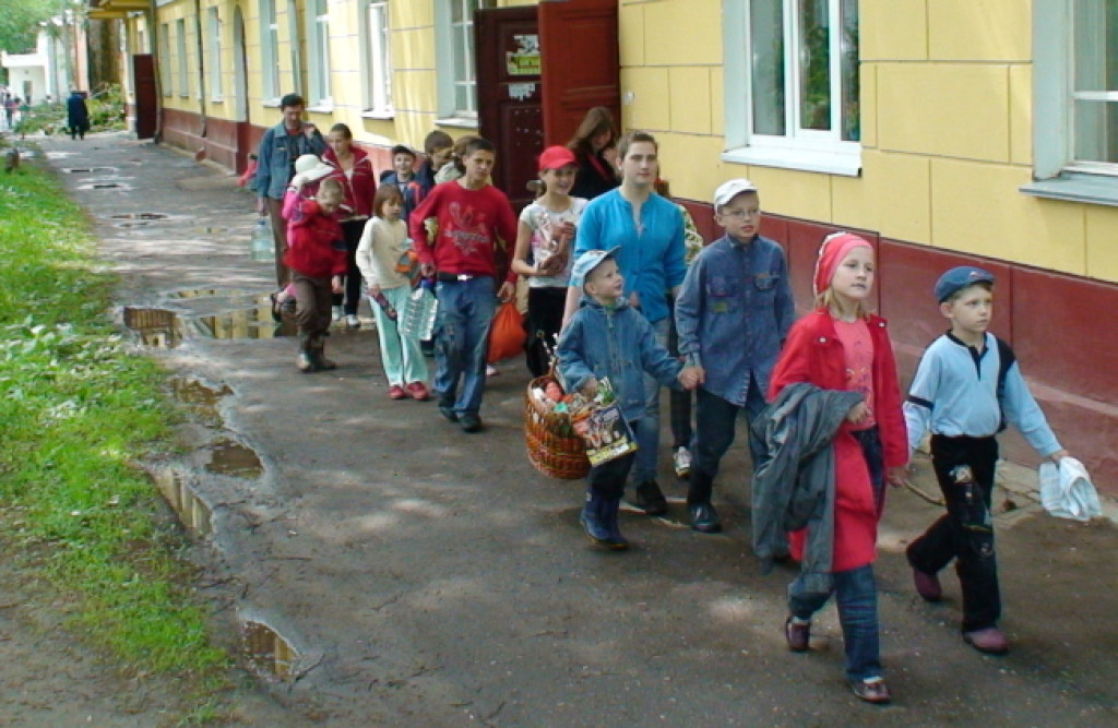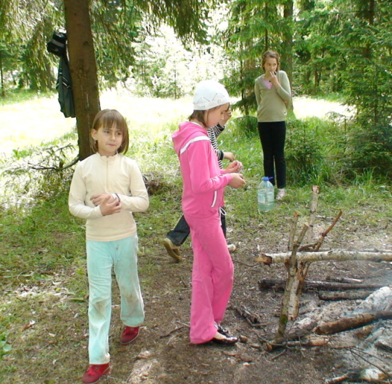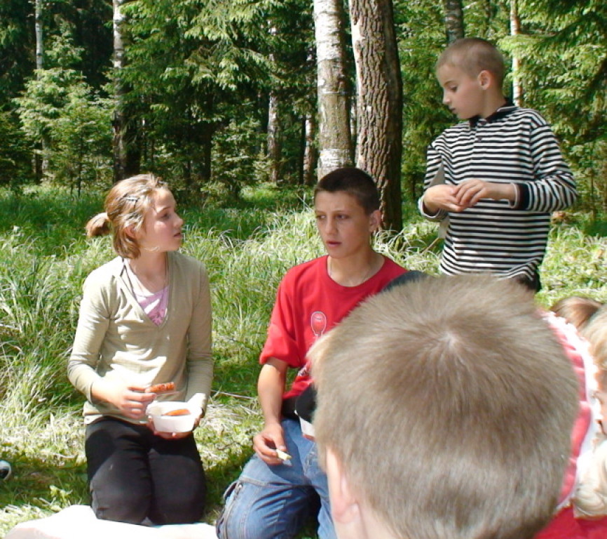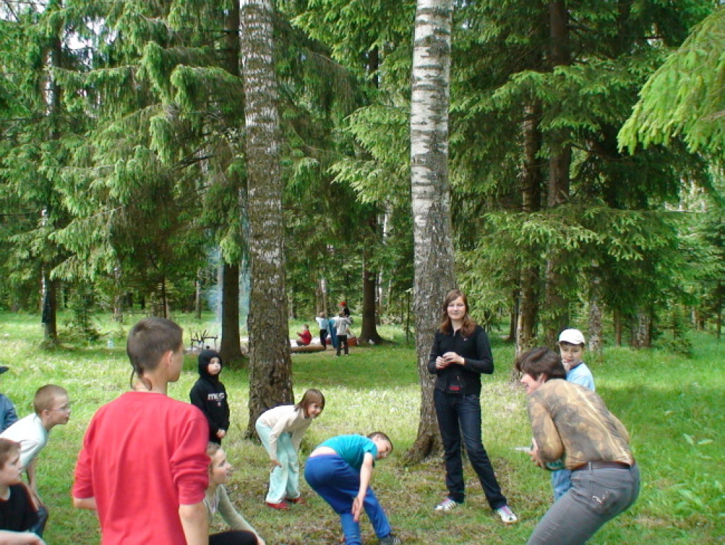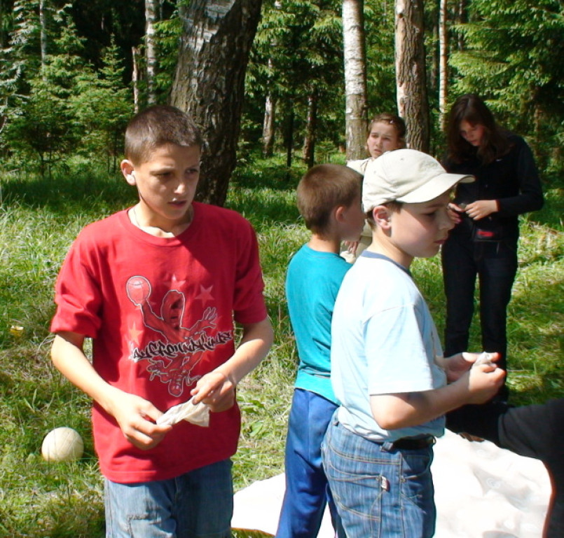 В воскресенье вместо обычных занятий учащиеся воскресной школы отправились на ближайшую лесную полянку. Так завершился 2009 - 2010 учебный год. 20 ребят, а также трое взрослых за время отдыха на природе уничтожили 6 килограмм сосисок, 2 килограмма огурцов, столько же помидор, а также несколько сладких рулетов, полкило сыра и 300 грамм сала. Сосиски жарили на костре и запивали колодезной водой, которой выпили 11 литров. Кроме этого ребята освоили новую спортивную игру. Играть в "Картошку" понравилось всем и большим и маленьким, несмотря на то, что в процессе "окучивания" картошке порядком доставалось мячом по спине, голове и другим частям тела. На лесной полянке ребята встретили лягушек, ящерицу, а также большое количество комаров. За исключением комаров, никакие животные серьёзно не пострадали. Весь мусор после трапезы ребята сожгли на костре, который затем залили заготовленной заранее водой. Ни комары, ни одиночные капли дождя не пугали ребят. Уйти с полянки они согласились только после того как закончились запасы пресной воды, предварительно взяв обещание с педагогов таким же образом отметить начало учебного года 2010 - 2011.