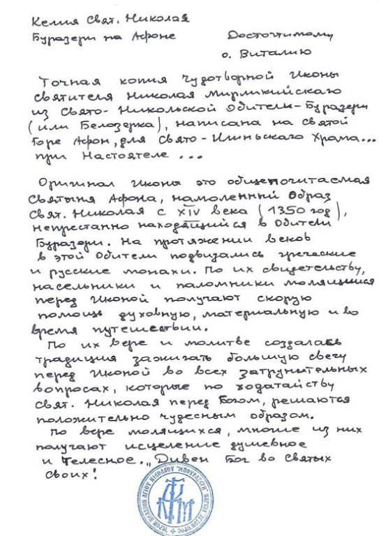 Очередная икона, написанная афонскими монахами для нашего прихода, должна прибыть в поселок 25 октября. 18 октября группа наших прихожан отправиться на Святую гору, чтобы доставить точный список иконы Николая Чудотворца. Подробнее о мероприятиях, связанных с её встречей, мы сообщим позже. А пока, в лавке установлена кружка для сбора записок и пожертвований, котрые будут переданы на Святую гору Афон.Татьяна Лыскова