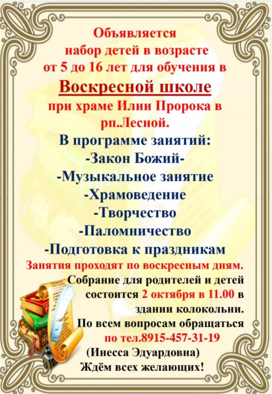 Объявляется набор в Воскресную школу!
