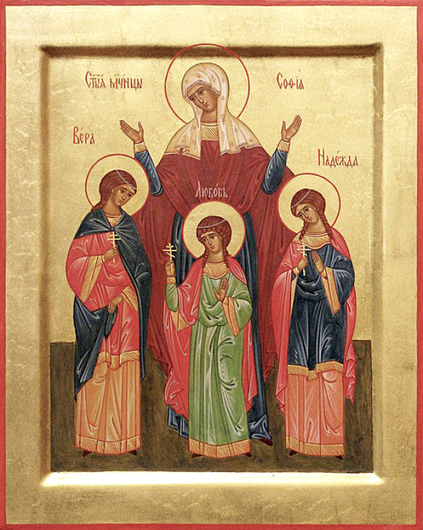 Сегодня святая Церковь празднует день памяти Веры, Надежды, Любви и их матери Софии.Они жили в Риме в дни правления языческого императора Адриана во II в. Однажды он решил уговорить Софию и ее дочерей принести жертву языческим богам. Те отказались. И тогда он стал им угрожать, а затем приказал предать Веру, Надежду и Любовь жестоким пыткам, затем обезглавить и расчленить. Все это происходило на глазах их матери Софии. Через три дня Господь забрал и ее.