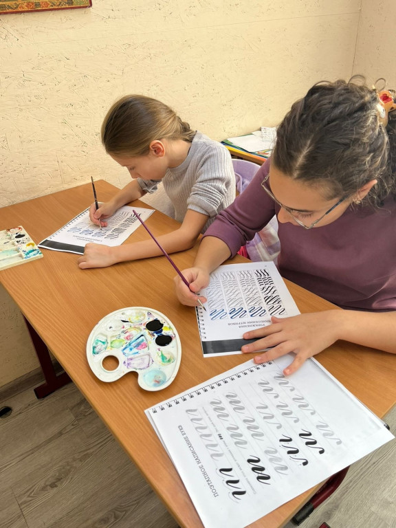 В прошедшее воскресенье старшие воспитанники Воскресной школы занимались каллиграфией. Это оказалось одновременно трудным и интересным занятием. Младшие же ребята расписывали стеклянные баночки. Творчество нравится всем!