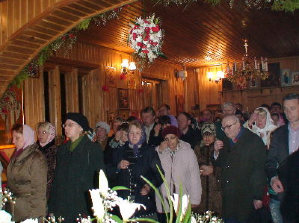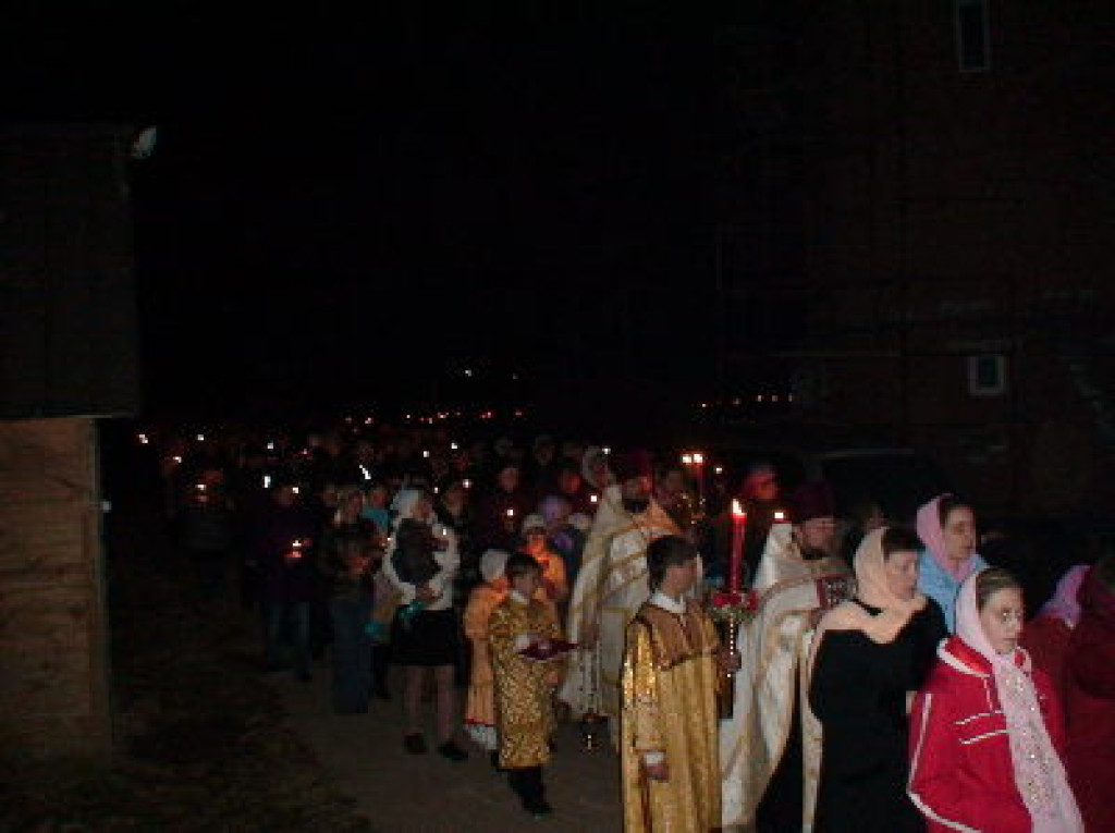 Праздничное богослужение прошло как всегда красиво и ярко. Приятно, что в храме было много молодежи. На праздничном богослужении в храме по случаю Пасхи народа было не очень много, зато ко времени крестного хода у храма собралась изрядная толпа. Крестный ход практически замкнулся, когда возглавлявшие его участники уже подходили к воротам храма, завершая круг, некоторые участники еще только тронулись в путь.